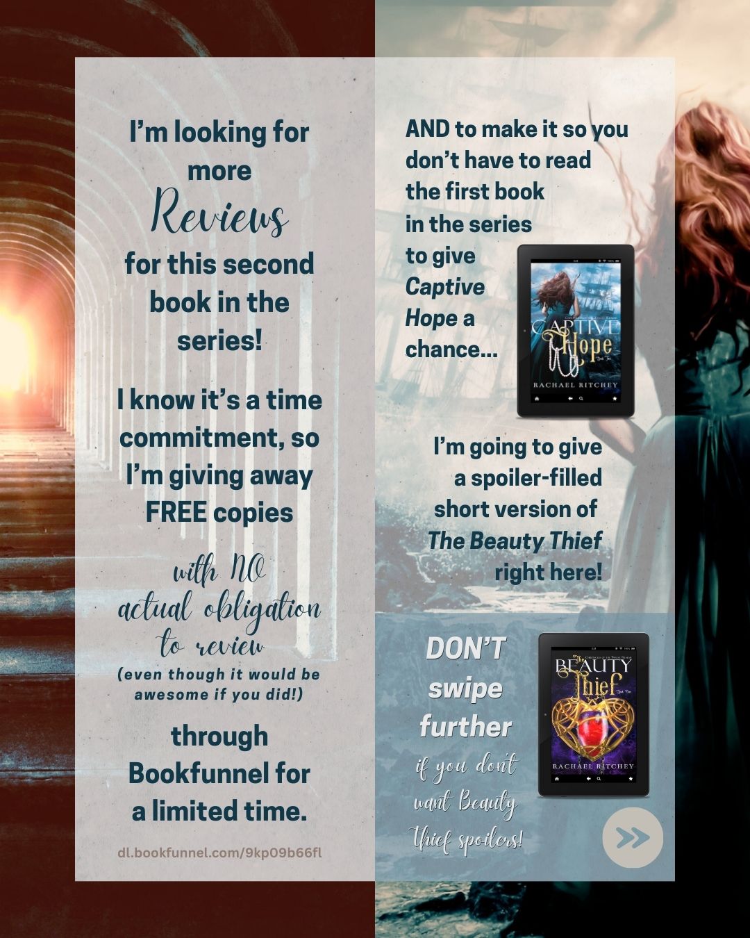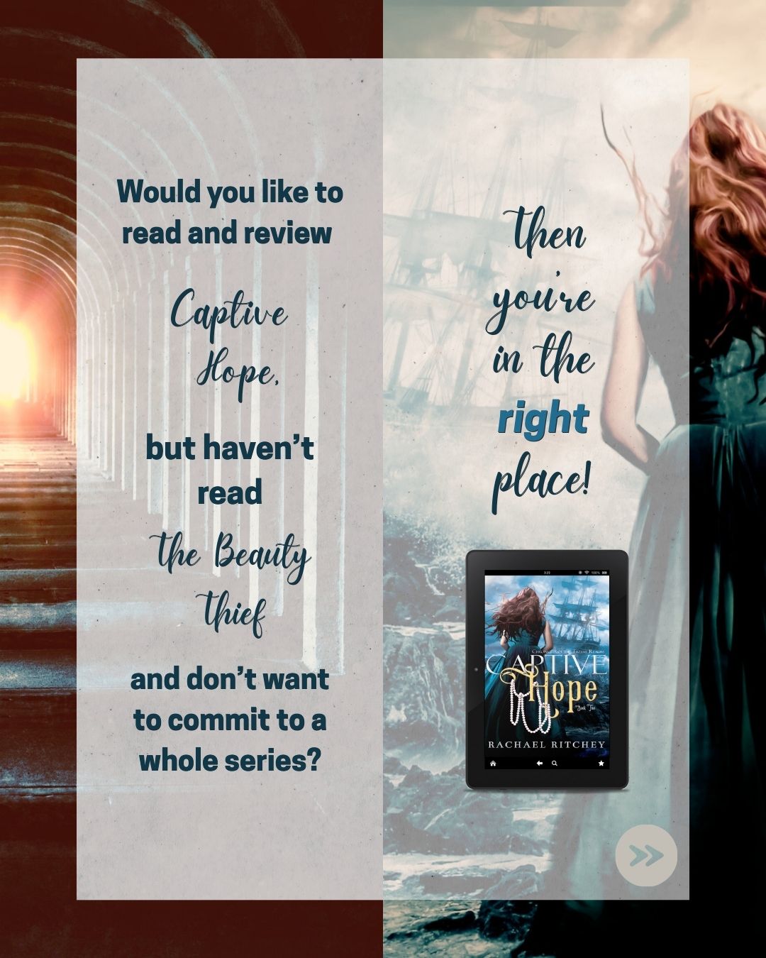 The idea is that giving Captive Hope a try, you would be willing and want to leave an honest review at your preferred retailer or Goodreads or wherever you can leave a review! If you have questions for me about the books, ask away!