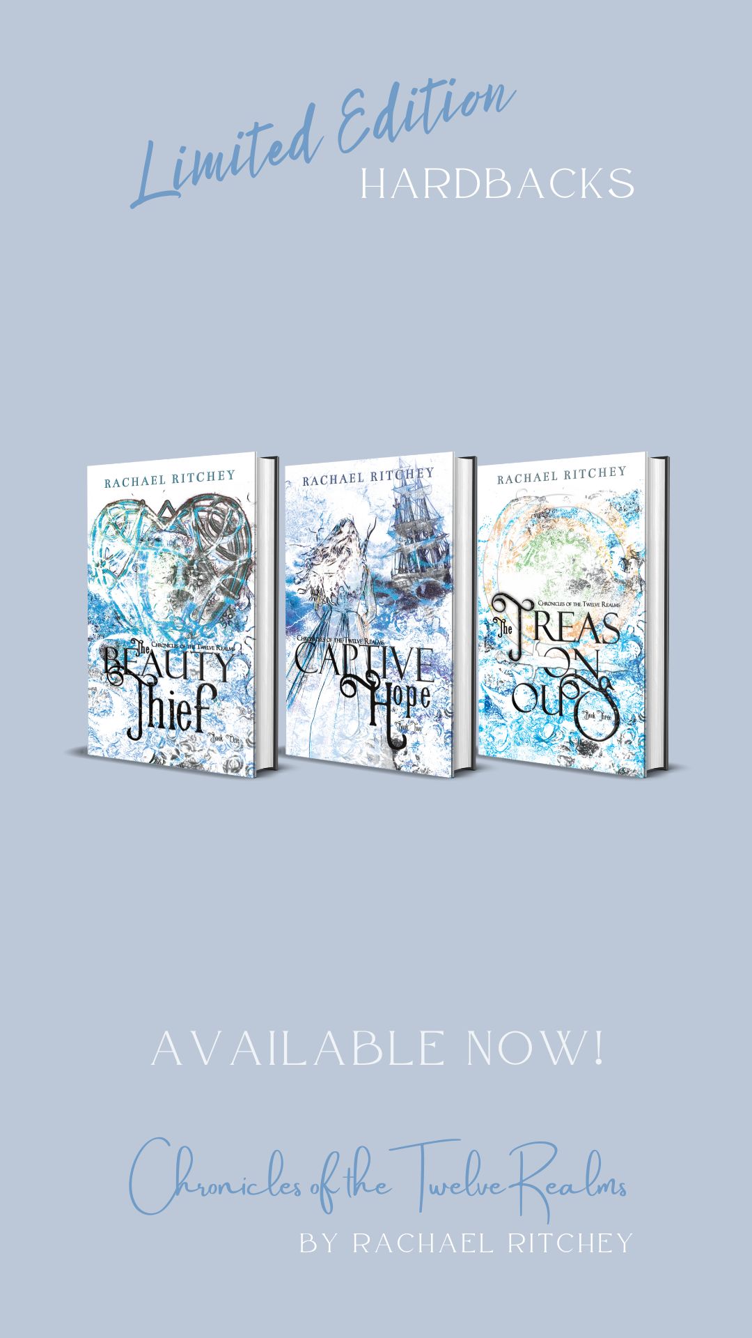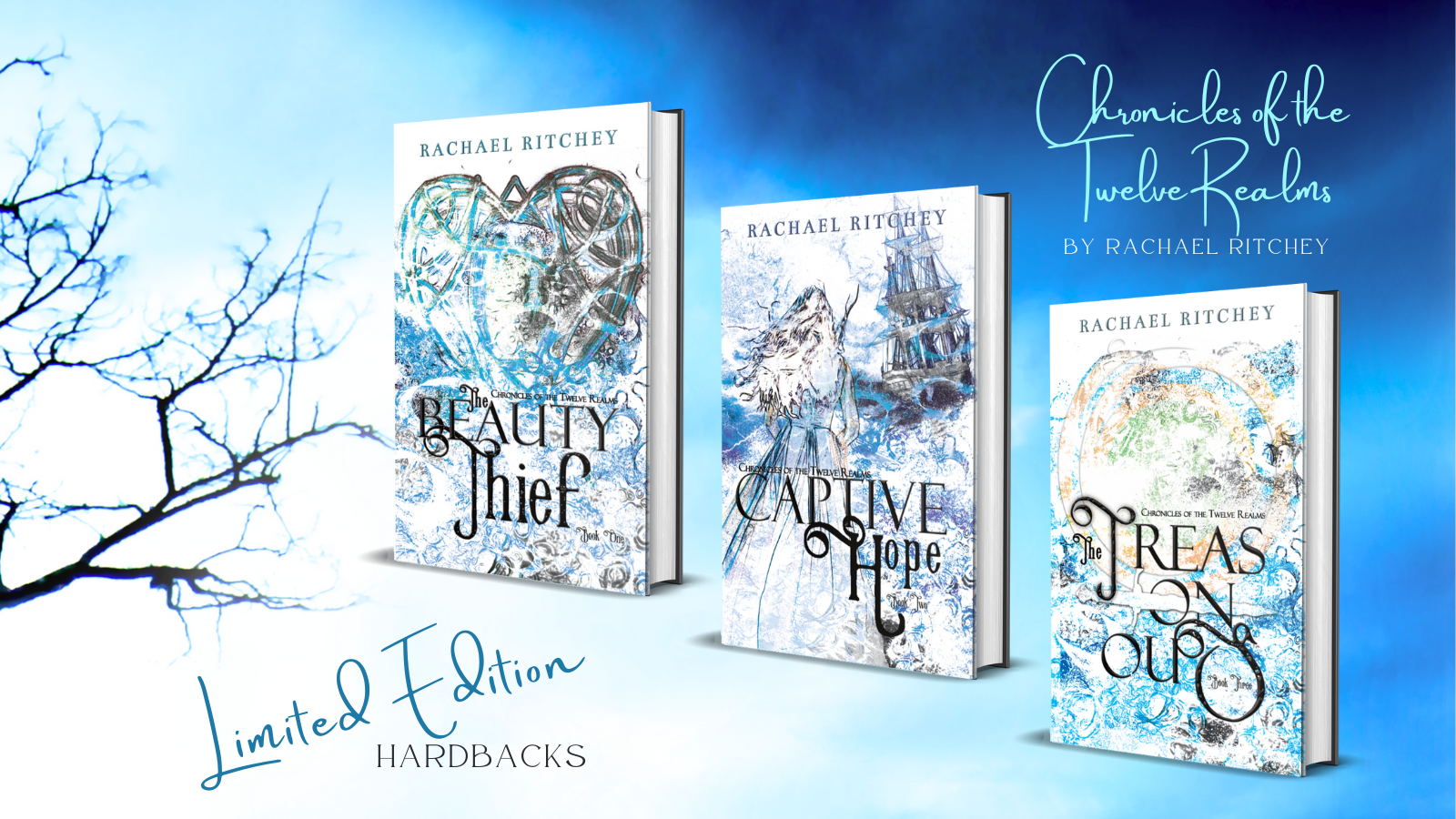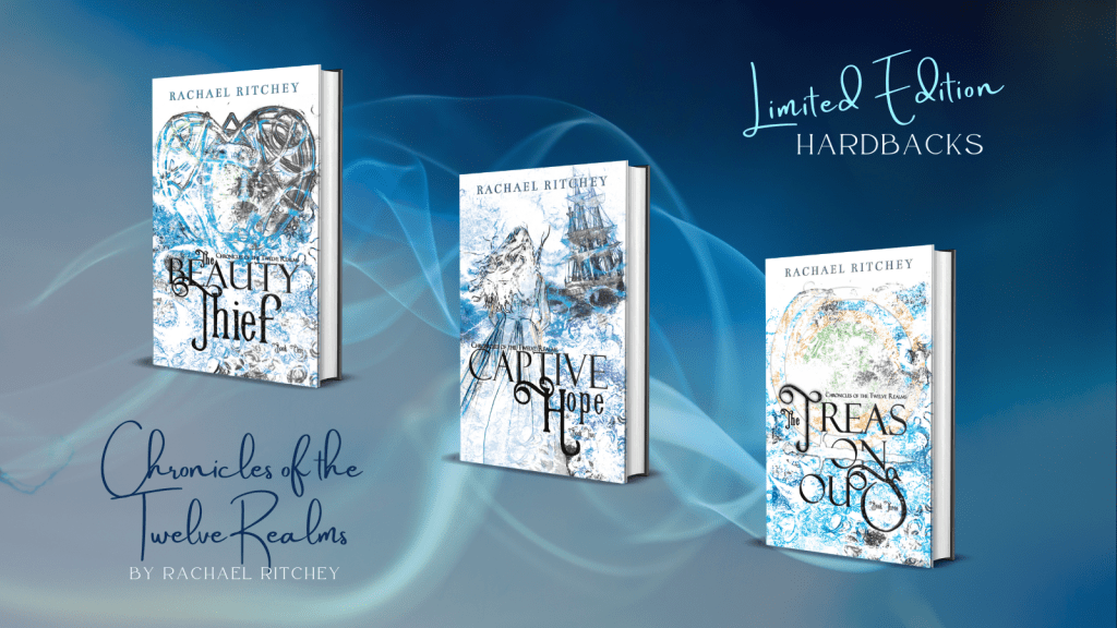 @RachaelRitchey is celebrating the upcoming ten-year anniversary of when she started writing The Beauty Thief with these beautiful, limited edition hardcover versions of the first three books in The Chronicles of the Twelve Realms series.